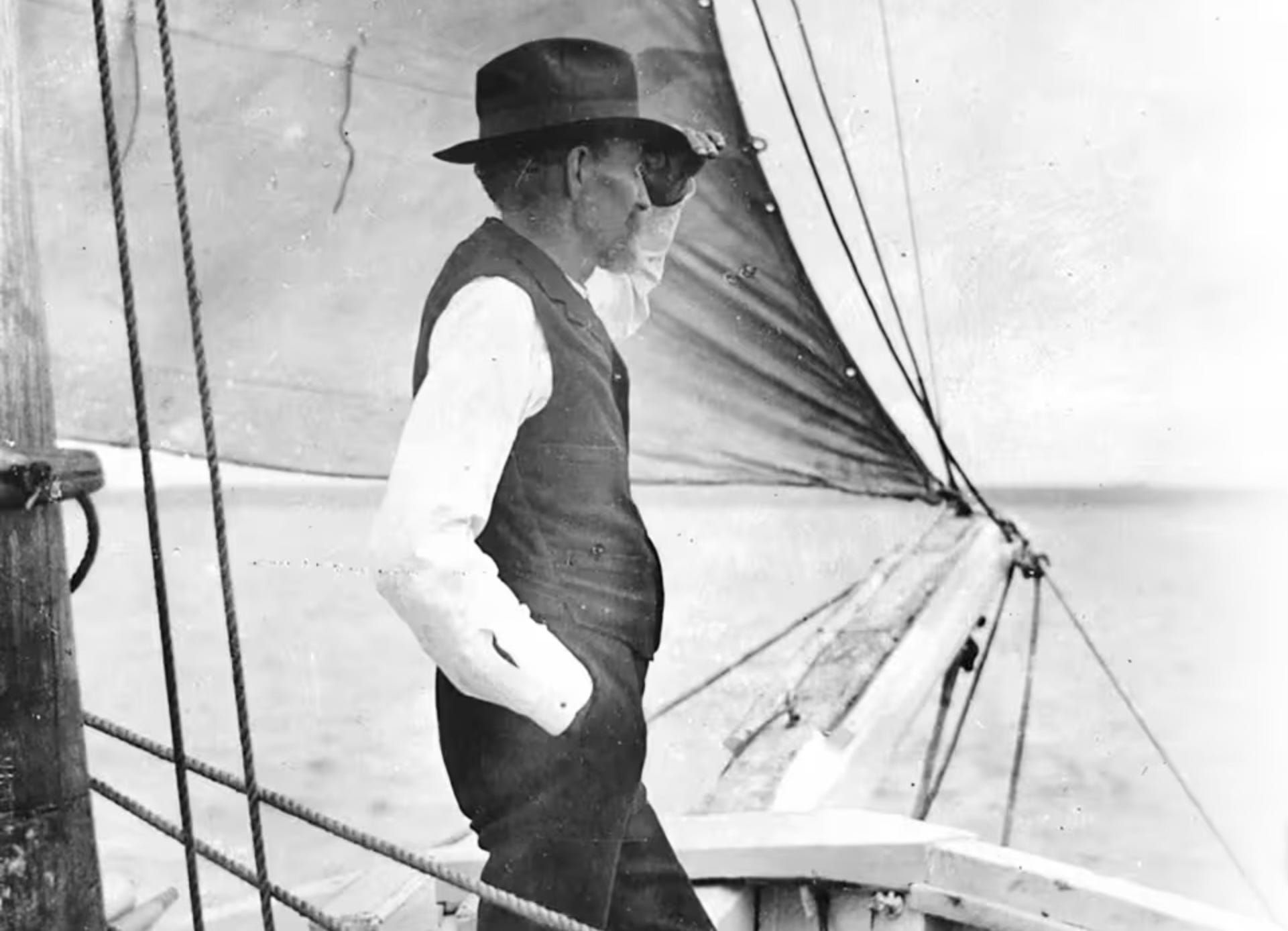 Prima che diventasse il primo solitario a circumnavigare il globo, Slocum era già un uomo costruito dalle tempeste. Nato nel 1844 in Nuova Scozia, fuggì di casa a quattordici anni con la sola ambizione del mare. Decenni dopo era capitano stimato sulle rotte commerciali dell’Atlantico, del Pacifico e dei mari del Sud, un mondo di velieri enormi, equipaggi indisciplinati, porti lontanissimi.