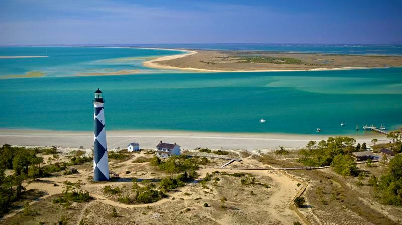 Dopo la solita settimana di attesa del bonifico con pellegrinaggio quotidiano alla Chase Manhattan Bank locale, finalmente ricaricati di “verdoni” riprendiamo la lenta marcia verso nord. Jeff apprezza molto le acqua interne, che in Inghilterra, soprattutto meridionale, costituiscono una fitta rete che lui conosce bene e che nell’Ottocento e primo Novecento rappresentarono vie di trasporto efficiente a basso costo. Ci chiede però di provare la barca in oceano per cominciare a familiarizzare con le vele e la navigazione vera. Perché no? Acceleriamo così un po’ il cammino, ma rientriamo in North Carolina a Morehead City per navigare nelle acque protette del Pamlico Sound, che si apre all’interno delle barene di sabbia del Cape Hatters.