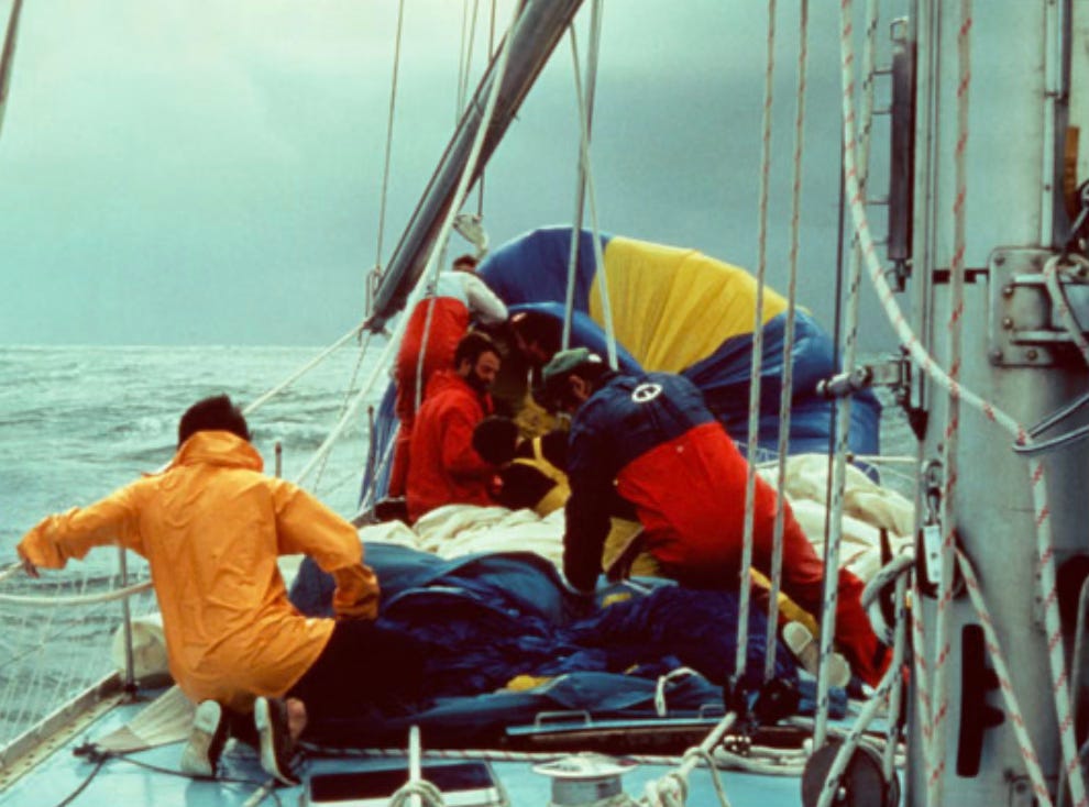 This first, challenging week on the Atlantic is marked by numerous episodes of seasickness, but also, on the positive side, by the resumption of watchkeeping, which separates the conflicts and the two contenders and allows the skipper to concentrate on the route, navigation, and proper handling of the boat. The wet, upwind sailing makes the internal helmsman’s station appreciated, well protected by the Plexiglas dome, which provides a fairly good view of the sail plan, the sail trimming, at least during the day, and a glimpse of the sea off the bow. But the nicotine addict skipper doesn’t give up his nervous inhaling and puffing of Marlboro Reds, even inside the dome, which measures just 80 centimeters in diameter, where the helmsman’s head is located, sitting on a tilting seat with a footrest. This helmsman’s station has no door, but the opening it’s not large enough to vent the copious amounts of smoke from the pack of Marlboro Reds consumed each shift. With a hand fan and a small battery-powered fan, the next helmsman tries to bring some fresh air into that smoky bubble, to survive...